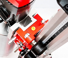 - Каретка перемещается по стойке вручную через пару "шестерня-зубчатая рейка", имеет регулируемые уголки из латуни, которые обеспечивают плавное скольжение и легкую подачу алмазной коронки