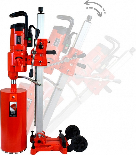 - Две скорости: надежный двухскоростной редуктор обеспечивает оптимальную скорость сверления (вращения алмазной коронки) для каждого диаметра алмазной коронки