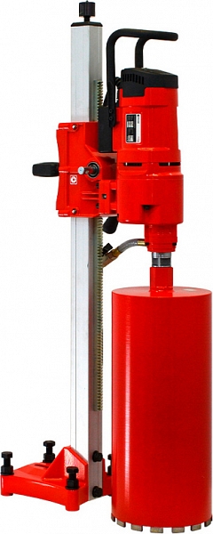 Алмазная сверлильная машина Diam ML-250N (Диам МЛ-250Н) – мощная односкоростная установка алмазного бурения с ненаклонной стойкой для сверления отверстий в бетоне и железобетоне Ø 20 – 220 мм, кирпичной кладке и других строительных материалах Ø 20 – 250 мм в строительстве, при электромонтажных работах, прокладке сантехнических и вентиляционных труб, отбора проб грунта, высверливании проемов в стенах, а также для частного ремонта.