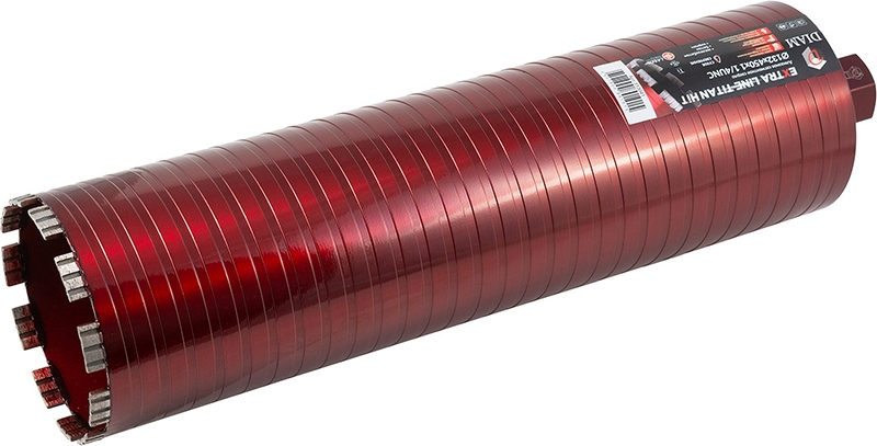 Алмазное сегментное сверло для сухого сверления с микроударом Diam Extra Line Titan Hit 132 мм (Диам Экстра Лайн Титан Хит 132 мм) предназначено для сухого алмазного бурения, в том числе и с микроударом, отверстий Ø 132 мм на сверлильных машинах / дрелях с микроударом и без микроудара в бетоне, железобетоне (армированном бетоне), бетонных строительных блоках, кирпиче, без подачи воды. Незаменимо в случаях, когда работы проходят в помещении, либо в ситуациях когда недопустимо загрязнение объекта, нет доступа к воде и иных ситуациях, предполагающих отсутствие охлаждения.