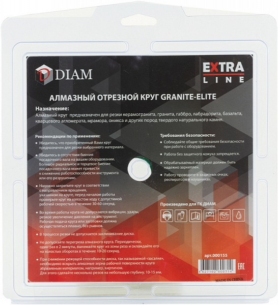 - Корейские технологии: изготовлен по технологиям и под контролем ведущих производителей алмазного инструмента Южной Кореи, специально по заказу ГК Диам