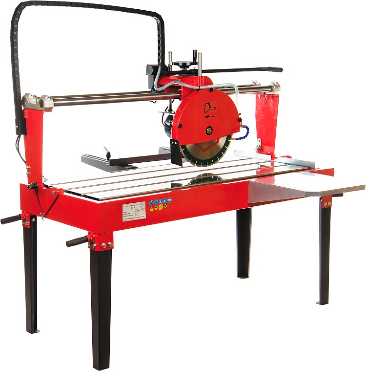 Камнерезный станок Diam SM-1200/2.2 (Диам СМ-1200/2.2) серии SM – отрезной мостовой станок для резки плит из природного камня, мрамора, гранита, широкоформатной облицовочной плитки, керамогранита, кварцевого агломерата, а также других строительных материалов длиной до 1200 мм, толщиной до 130 мм, под прямым углом, а также под углом до 45°, в строительстве на крупных строительных объектах, на камнеобрабатывающих предприятиях, а также там, где необходимо быстро и качественно выполнять работы по облицовке полов и стен.