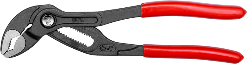 Клещи переставные с механизмом быстрой фиксации Voll Cobra 7 (175 мм), CrV (Волл Кобра 7 (175 мм), ЦрВ) предназначены для ремонта и монтажа трубопровода и сантехники, а также в других строительных работах, где необходимо зажимать предметы разного диаметра до 35 мм.