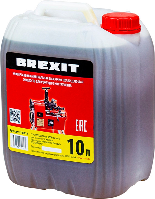 Минеральное резьбонарезное масло Brexit 10 л (Брекзит 10 l) – универсальная минеральная смазочно-охлаждающая жидкость (СОЖ) с добавлением противозадирных, антикоррозионных, противоизносных, антипенных присадок для использования в качестве технологической среды при механической обработке металлов.