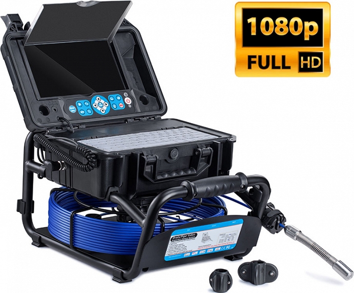 Проталкиваемая система видеоинспекции трубопроводов Rotorica 3499F-40 (Роторика 3499Ф-40) с камерой CMOS, Ø 23 × 51 мм, широким углом обзора 130° и разрешением формата Full HD 1080P AHD (1920 × 1080), записью видео и аудио, встроенным счетчиком расстояния и катушкой с кабелем Ø 5,2 мм × 40 м предназначена для осмотра внутренних трубопроводов, канализации и сливов, а также для инспекции каналов, дымоходов, воздуховодов в производствах и домах.