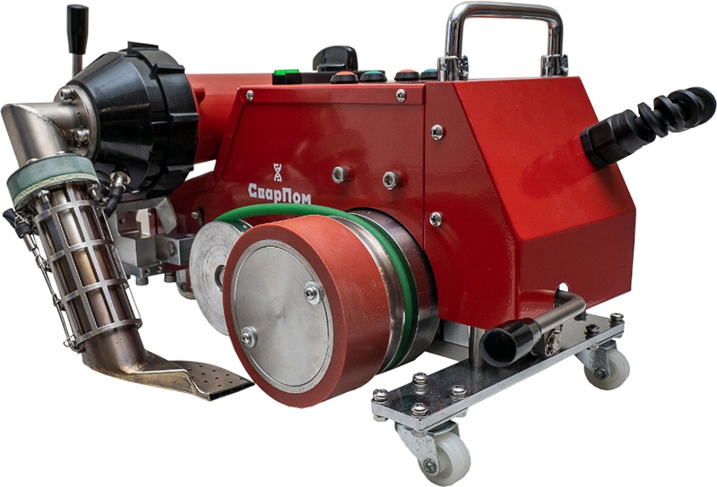 Сварочный автомат горячего воздуха СварПом СП51 20 мм (SvarPom SP51 20 mm) – автоматический сварочный аппарат горячего воздуха для эффективной сварки внахлест горячим воздухом технических ПВХ-тканей и полимерных пленок при производстве всевозможных тентовых и баннерных конструкций (укрывных тентов, автомобильных тентов, павильонов, укрывных пленок для сельского хозяйства и строительства, биотопов, бассейнов, промышленных завес, рекламных баннеров и т.д.).