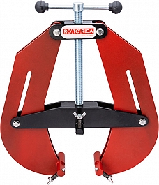 - Прочная стальная конструкция из кованной стали повышенной прочности состоит из стальной рамы с 2-мя ножками с регулировочными винтами и верхнего прижима с затяжным винтом, которые регулируют размер охватываемых труб с лапкой и винтом центровки, надежность и безопасности использования
